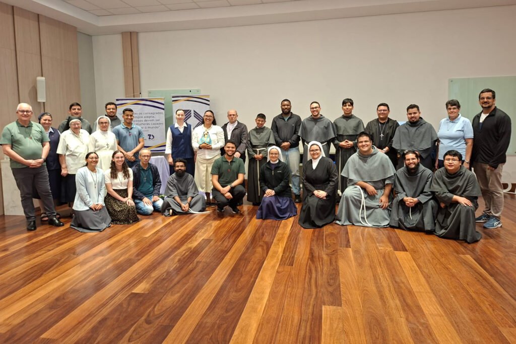 A Conferência dos Religiosos do Brasil (CRB) regional Paraná realizou o primeiro encontro do Postulinter, dias 7 e 8, e Novinter, dias 9 a 13 de março de 2026, na Casa das Irmãs da Divina Providência, em Curitiba. O evento reuniu jovens em processo de formação inicial para a vida religiosa, em um ambiente de fé, oração e espiritualidade. A Ir. Neriuza Franco, FC, assessorou o Postulinter e o primeiro dia do Novinter e o Frei Ivani Pinheiro Ribeiro, OC conduziu o Novinter nos dias 10 a 13.